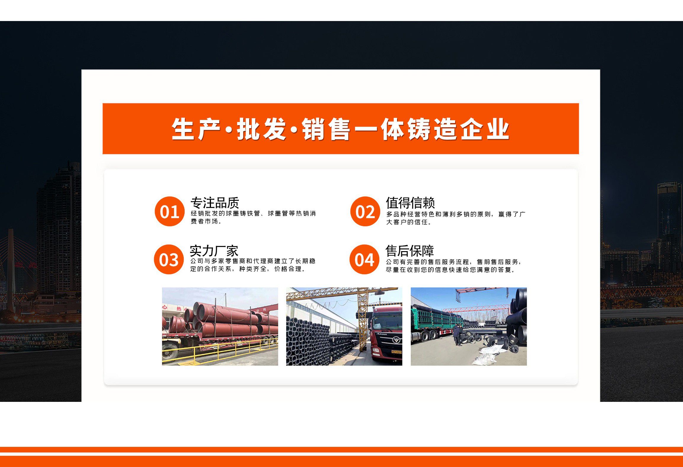 青島金源達(dá)管業(yè)有限公司主要經(jīng)營各種規(guī)格球墨鑄鐵管,球墨管,球墨鑄鐵管廠家等產(chǎn)品,質(zhì)量可靠,誠信經(jīng)營,值得信賴! 青島金源達(dá)管業(yè)有限公司始終堅(jiān)持“誠信立業(yè),追求卓越,合作共贏,共同發(fā)展”,竭誠歡迎各界朋友來廠參觀指導(dǎo),洽談業(yè)務(wù)。我們?cè)概c您攜手共進(jìn),互惠雙贏,共創(chuàng)未來! 公司堅(jiān)持“以奮斗者為本”的理念,關(guān)心關(guān)愛職工,職工的獲得感、幸福感更加充實(shí)、更有保障、更可持續(xù);秉承“忠誠企業(yè)、勇于擔(dān)當(dāng)、開拓創(chuàng)新、主動(dòng)作為”,堅(jiān)持黨建領(lǐng)航、創(chuàng)新驅(qū)動(dòng)、文化塑魂、奉獻(xiàn)社會(huì),全面致力于綠色、低碳、高效、高質(zhì)量發(fā)展。 愿與各界朋友攜手并進(jìn),共創(chuàng)未來!...